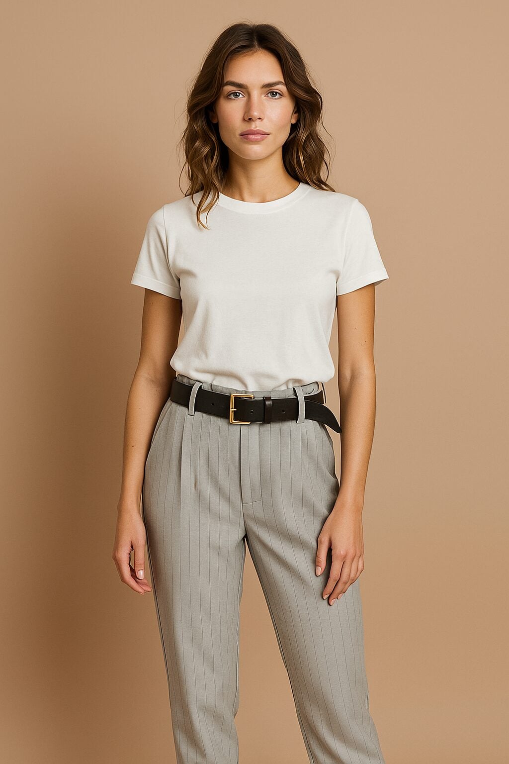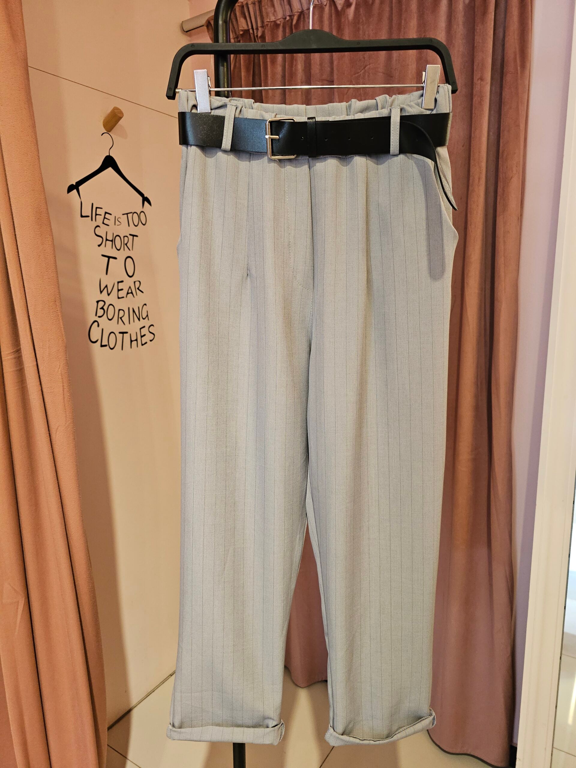 Παντελόνι με ρίγες  & λάστιχο στη μέση , άνετη γραμμή.