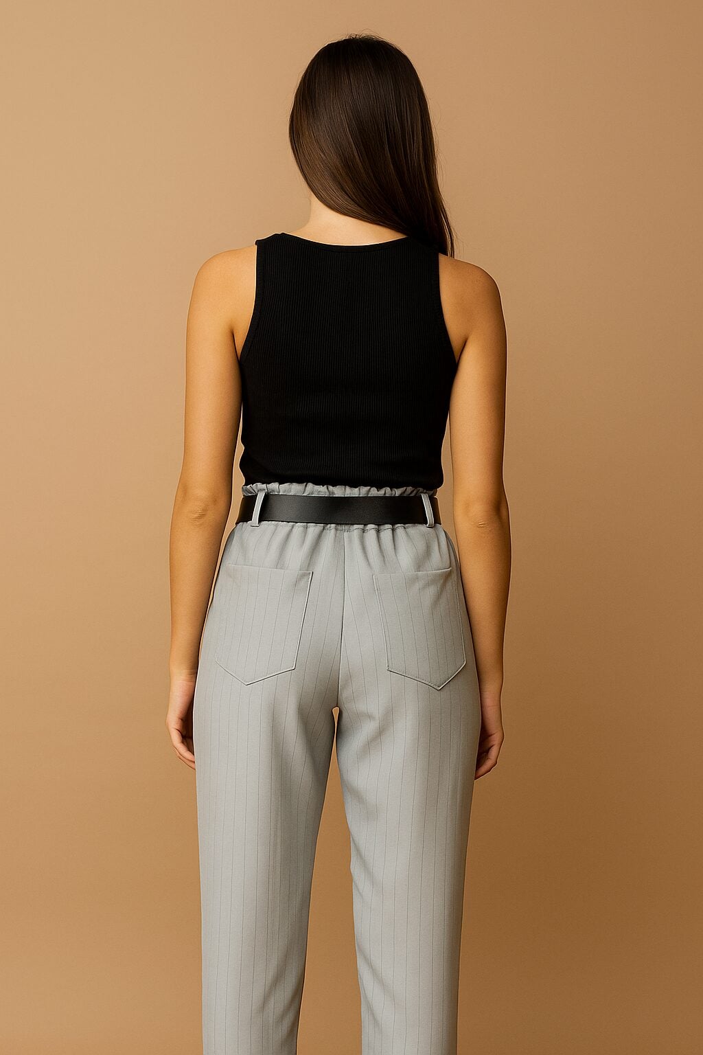 Παντελόνι casual άνετο με λάστιχο στη μέση, γκρι με ρίγα