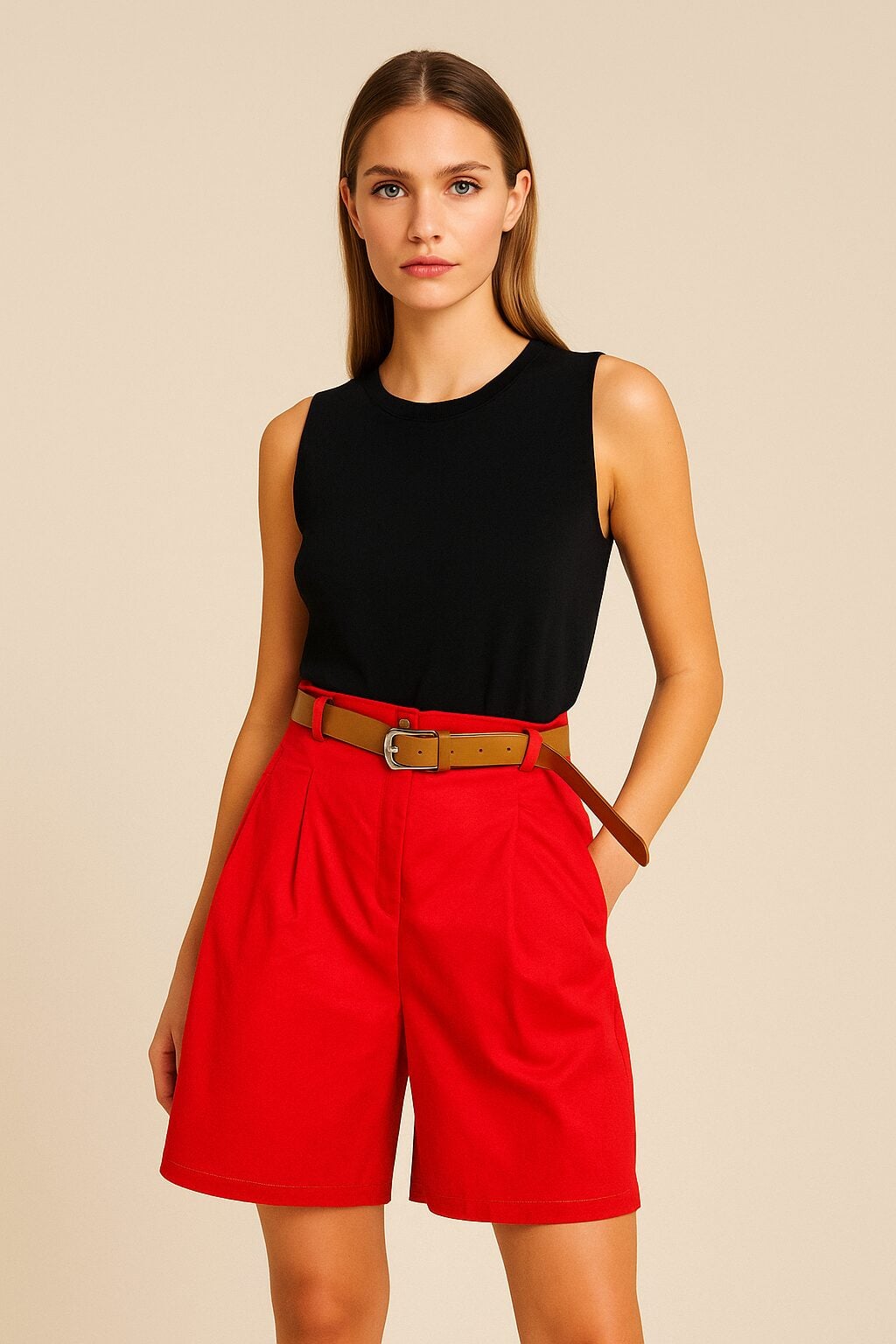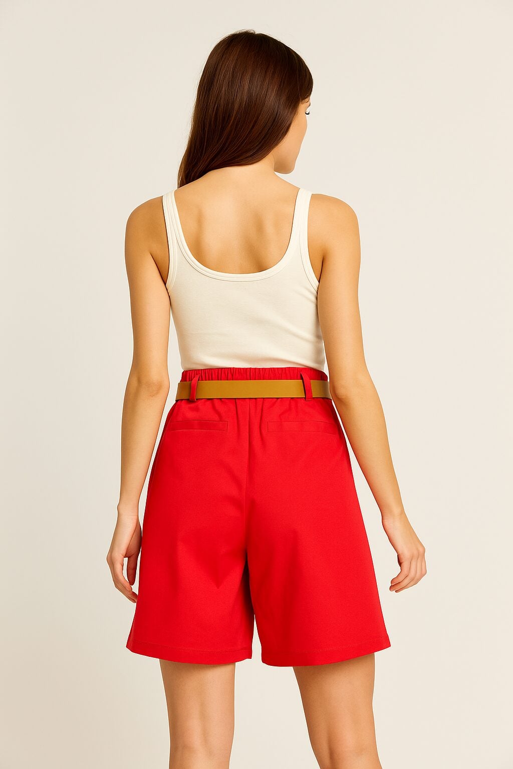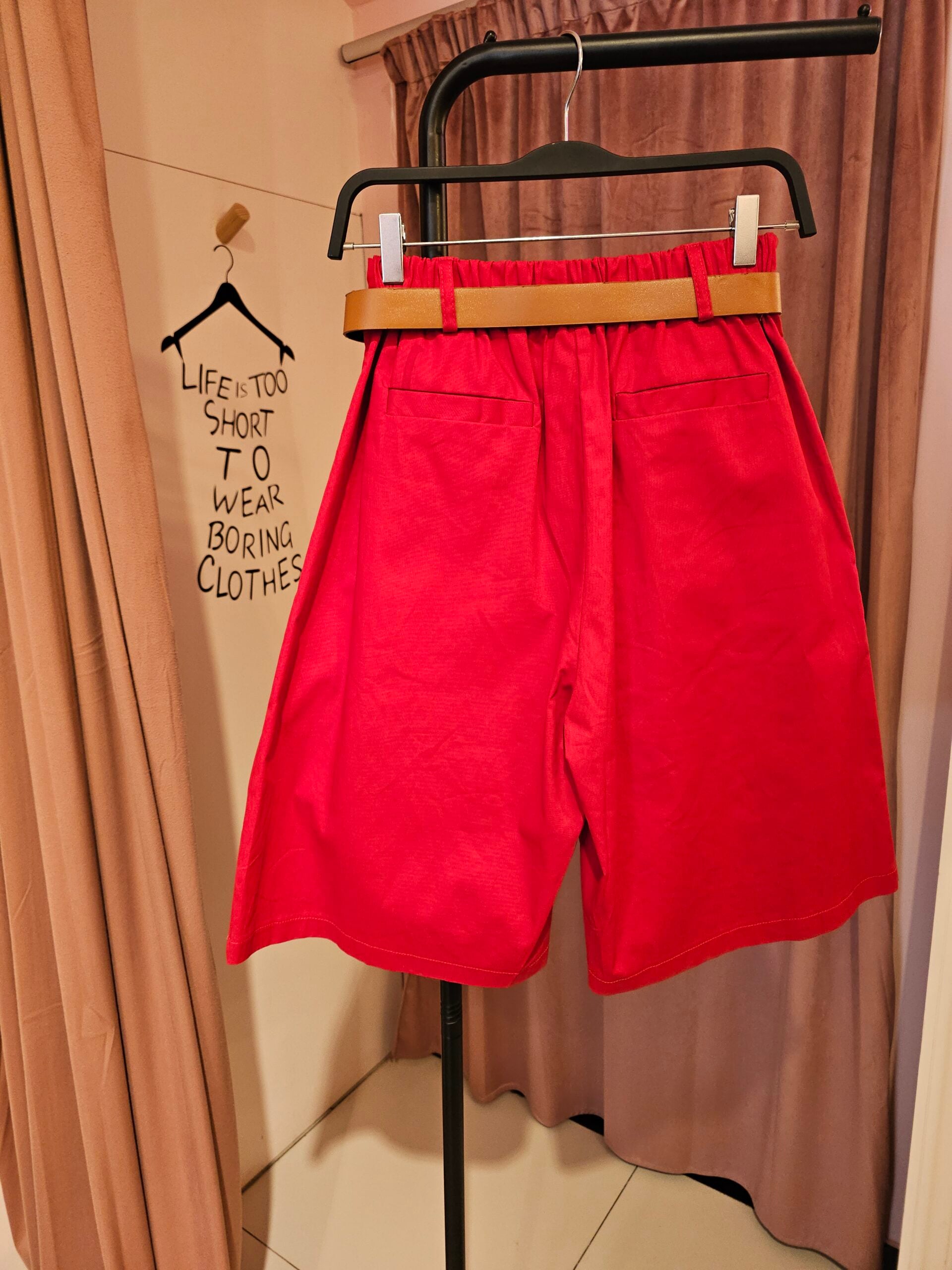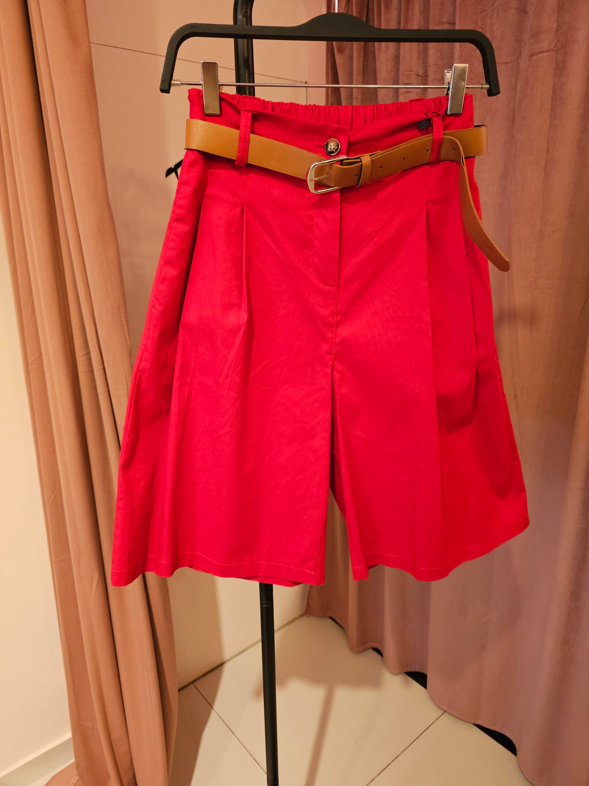 Βερμούδα κόκκινο χρώμα με λάστιχο στη μέση σε Α γραμμή